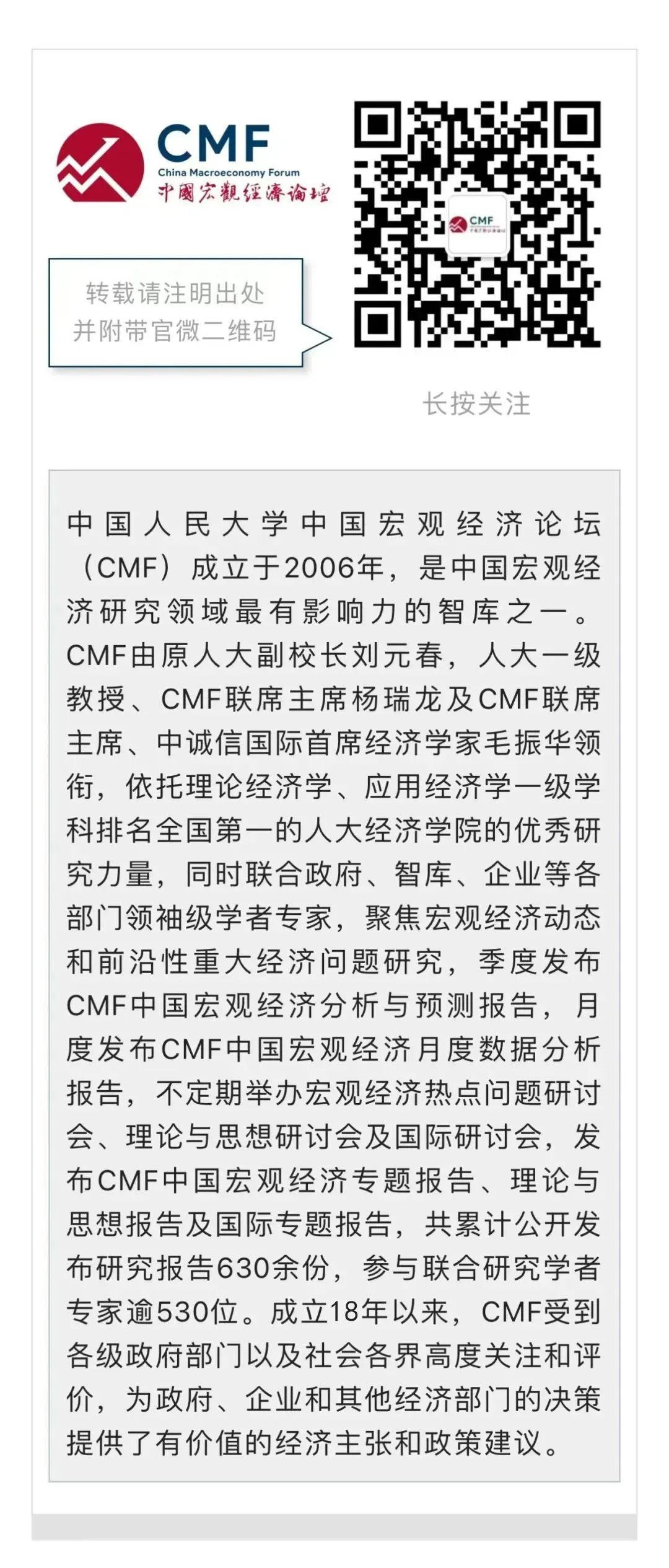 中国宏观经济论坛(CMF)主要成员,北京大学经济学博士,中国人民大学吴玉章讲席教授、国家发展与战略研究院党支部副书记、学术委员会委员、中国政府债务研究中心主任,国家社科基金重大项目首席专家,教育部青年长江学者,北京市优秀青年人才,纽约大学、芝加哥大学访问学者,《经济理论与经济管理》副主编、北京市经济学总会副秘书长、财政部国际财经研究专家工作室固定成员。曾任国际货币基金组织(IMF)经济学家、亚洲开发银行(ADB)顾问。在《中国社会科学》《经济研究》《管理世界》《Global Food Security》《Energy Economics》《China Economic Review》等权威期刊发表论文数十篇。荣获教育部高等学校科学研究优秀成果奖二等奖、商务部商务发展优秀成果奖、刘诗白经济学奖、洪银兴经济学奖、青年经济学者论文奖、CTTI智库优秀成果特等奖、中国经济学优秀博士论文奖等。持续撰写及发布中国宏观经济论坛(CMF)年度/中期报告,十余篇政策报告获党和国家领导人批示。研究领域:宏观发展与宏观金融。